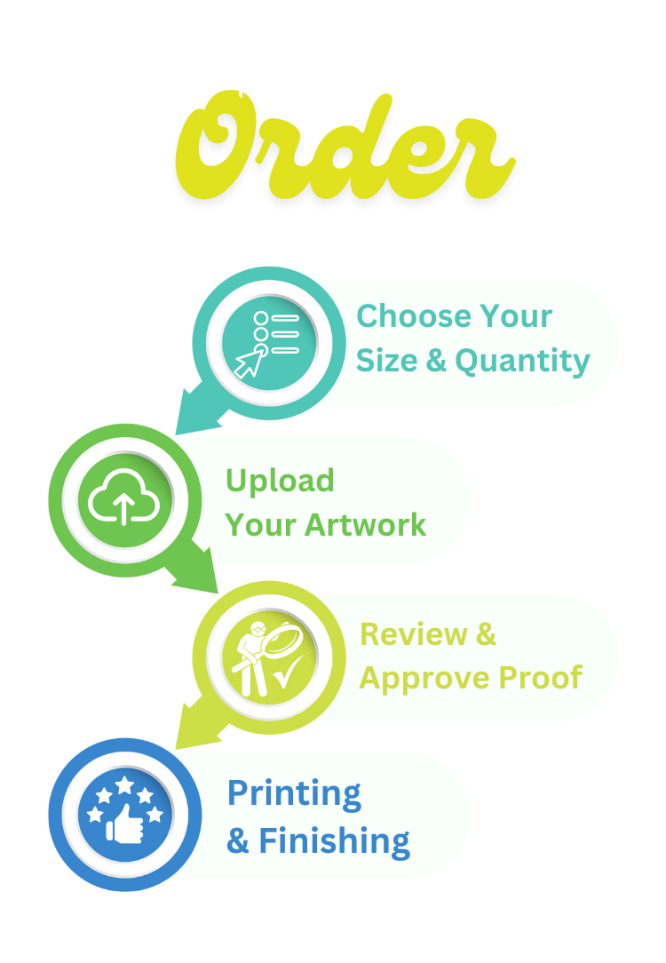 - Printing & Finishing – Your stickers are printed on high-quality, weatherproof vinyl with your choice of matte or glossy finish for long-lasting durability.
